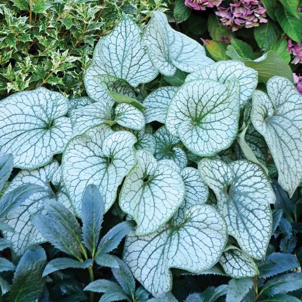 Brunnera is most at home in woodlands or along a shady stream bed, where it will form a lush understory of quiet beauty. One of its common names, False Forget-me-not, refers to the intense azure flowers.