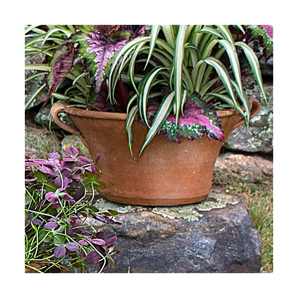 The Ikaros pot has one drainage hole. Dimensions are for the widest diameter (including handles) by height of pot. Keep from freezing in winter.