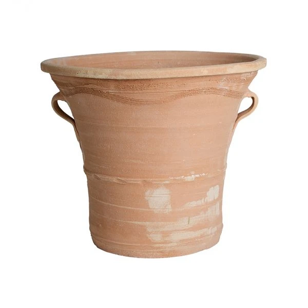 Like our other Cretan pottery, these extraordinary Konstantina pots are thrown by hand, then fired for hours in wood-burning kilns that give them a soft and variable shade of tan, which changes with the light and the pots’ contents. Shapes are drawn from Classical-era containers that were then, and are now, common household items in Crete. They provide a look that is both traditional and informal, and we’ve given them prominent positions throughout our gardens and in our home.