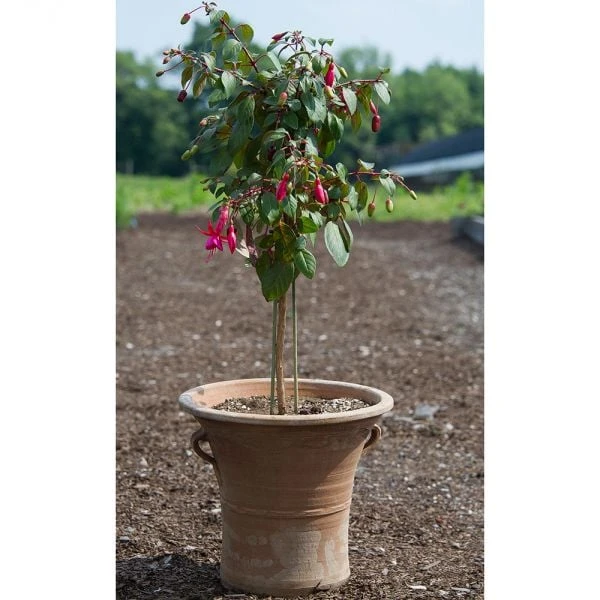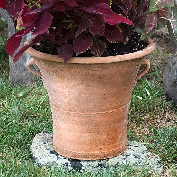 The Konstantina pot has one drainage hole. Dimensions are for the widest diameter (including handles) by height of pot. Keep from freezing in winter.