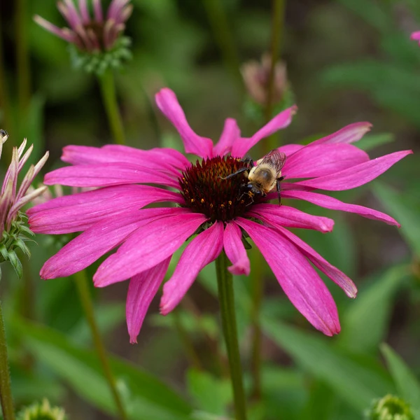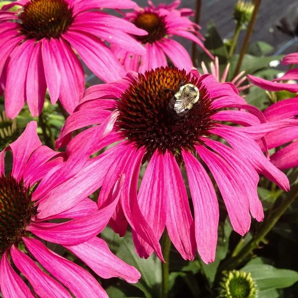 Echinacea, a North American genus in the Daisy family, has big, bright flowers that appear from late June until frost. Coneflowers thrive in average soils or hot, dry conditions and shrug off cold. Blooms last well, cut or dried, and the seeds in the large cone at the heart of the flower head provide nourishment for birds. Coneflowers are equally at home in formal borders or cottage gardens. Deer resistant.