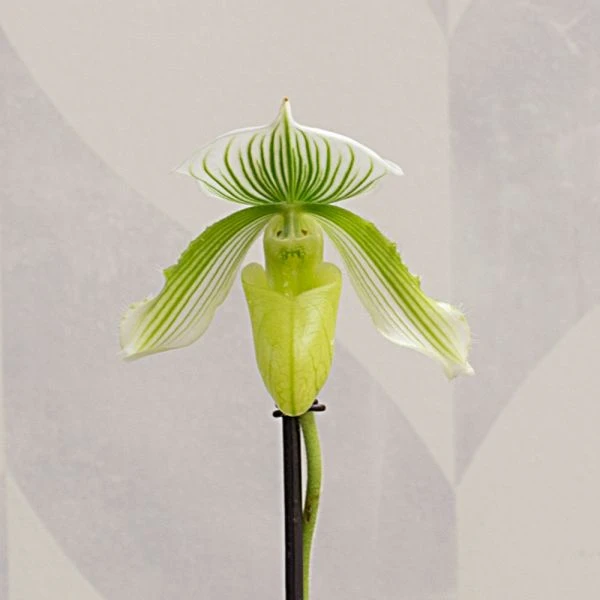 Quietly captivating, the blossoms of this tropical Lady Slipper Orchid (Paphiopedilum) command attention from across the room. Step close, and you’ll be rewarded with the sight of a classically formed, exquisitely detailed flower that appears to hover above a nest of speckled foliage. Easy to grow in homes near a bright window, plants prefer warm days (75–85° F) and cooler nights (60–65° F). We ship 1 Orchid in a 4½″ ceramic cachepot.