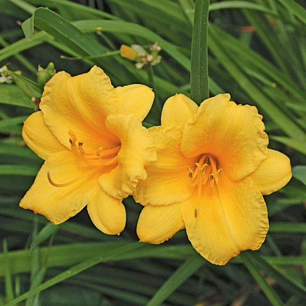 Hemerocallis (Daylily) ‘Stella de Oro’ begins its display of golden yellow flowers in mid-June and keeps flowering at a steady pace until fall if the spent blooms are removed. This means it throws lots of 24″ flower scapes practically all summer, making it the all-time blooming champion among Daylilies. Use it in borders or in containers on a patio or deck, or make a Daylily border just of ‘Stella.’ For sheer volume of blooms, she can’t be beat. Winner of the Stout Silver Medal from American Hemerocallis Society in 1985.