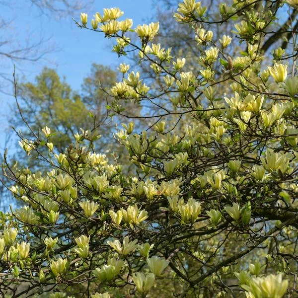 In midspring before its leaves appear, Magnolia ‘Butterflies’ covers itself with glorious, 4-5” yellow flowers that sit upright on the tree’s branches. After 10 years, plants will reach about half their full size. For information on growing and care, click Growing Guide.