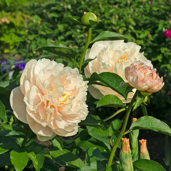 We ship large roots with 3 to 5 eyes that are fresh from the growing fields. While a newly planted Peony seldom makes a first-class show in its first season, these vigorous plants will reach the top of their form in their second or third year. Southern gardeners should provide afternoon shade.