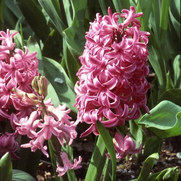 Among the large spring-blooming bulbs, Hyacinths may be the closest rival to Tulips for range and intensity of color, offering everything from yellow, orange, pink, blue, and purple to pristine white. We created the Rubies and Pearls Hyacinth Mix, a striking study in light and dark from just three varieties, blending spun-sugar pink with the deepest of maroons plus creamy white. Not labeled. 12 bulbs cover 2 sq ft.